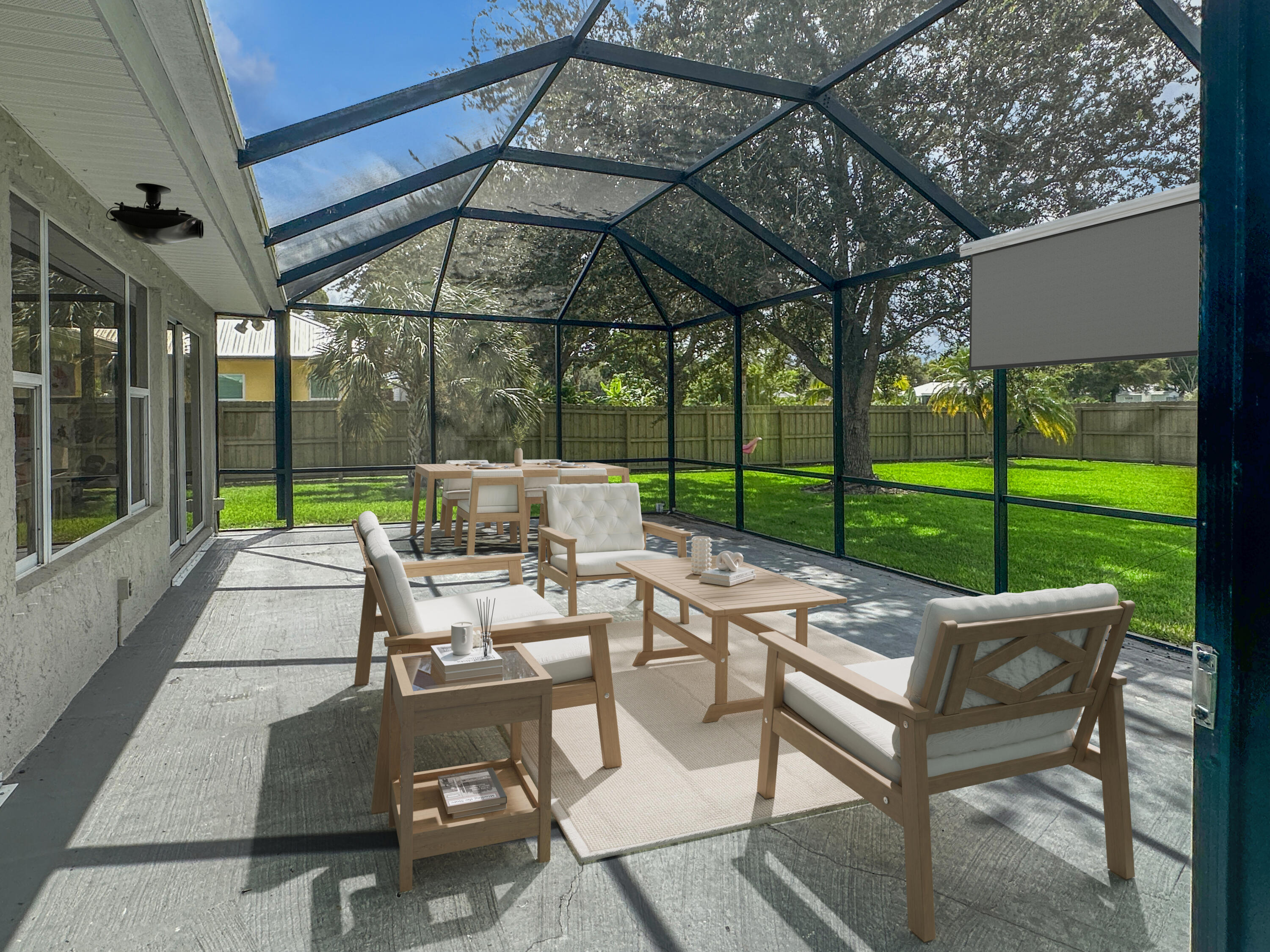 DescriptionEmbrace the elegance of easy living in this impeccable single family residence, nestled within the serene backdrop of the 6th Fairway of Island Pines golf course. With a stunning metal roof crowning its solid CBS structure, this home radiates both durability and style. Your new retreat boasts two generously sized bedrooms, complemented by two well appointed bathrooms, ensuring both comfort and privacy. A bonus room offers the versatility to serve as a den, office, or even a third bedroom, catering to your ever evolving needs. A heartwarming spacious kitchen, complete with newer appliances, melds seamlessly into a cozy family dining area, ideal for creating cherished memories over home cooked meals. The large formal dining room and family room combination provides a perfect canvas for both elegant entertaining and restful evenings. Step into the enclosed Florida room, bathed in natural light, offering a tranquil space to unwind. Venture out to the expansive screen enclosed patio, providing an idyllic setting for relaxation amidst the gentle breezes. The property's .39 acre lot affords a substantial fenced backyard, a personal oasis ready for your outdoor hobbies or simply soaking up the Florida sun. The oversized garage, with its double doors, includes ample space for a workshop, crafting a haven for the hobbyist or DIY enthusiast. With a new hot water heater, A/C system, and electrical panel updated in 2021, this home is as functional as it is beautiful. Located in a coveted neighborhood close to all life's conveniences, this is more than a house; it's the key to the lifestyle you've been dreaming of.