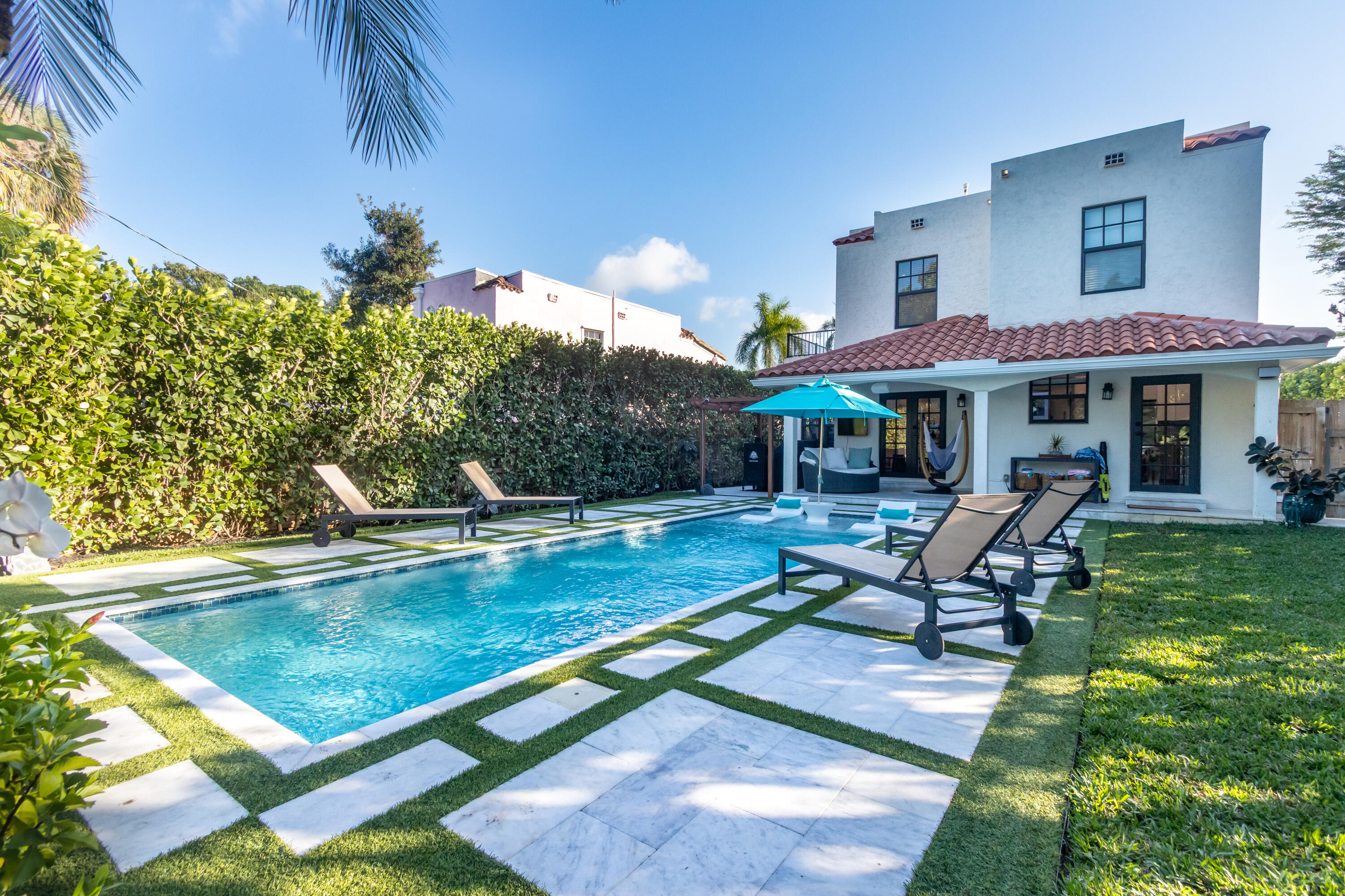 DescriptionFully rebuilt in 2021, this beautiful 3 bd/2.5 bath Spanish style house offers modern construction conveniences with historic aesthetics in Northwood Hills, minutes from downtown West Palm Beach. Underground power lines, wiring, water main/sewer line & plumbing are all new. First floor boasts Bruce Laurel Oak floors, wood cabinetry, quartz counters, fireplace, office/den, & a half bath/laundry room. Upstairs is the en suite master w/ private balcony, plus two guest bedrooms & full bath. Outside there's a covered loggia finished w/ stone flooring, professional landscaping, & sophisticated salt water pool has a sun shelf & both a heater & chiller. Other upgrades: CAT 5 ready, whole house water softener, EV charging station, CCTV security system, waterproof decking, landscape lights, tankless water heater, premium shed, & closet systems. Smart home systems include doors, lights, thermostat, sprinklers, & inside/outside sound system. With only the Pecky Cypress door & chimney remaining from the original 1926 construction, this contemporary/historic home truly offers the best of both worlds. 10 minutes to the ocean or airport & no HOA.